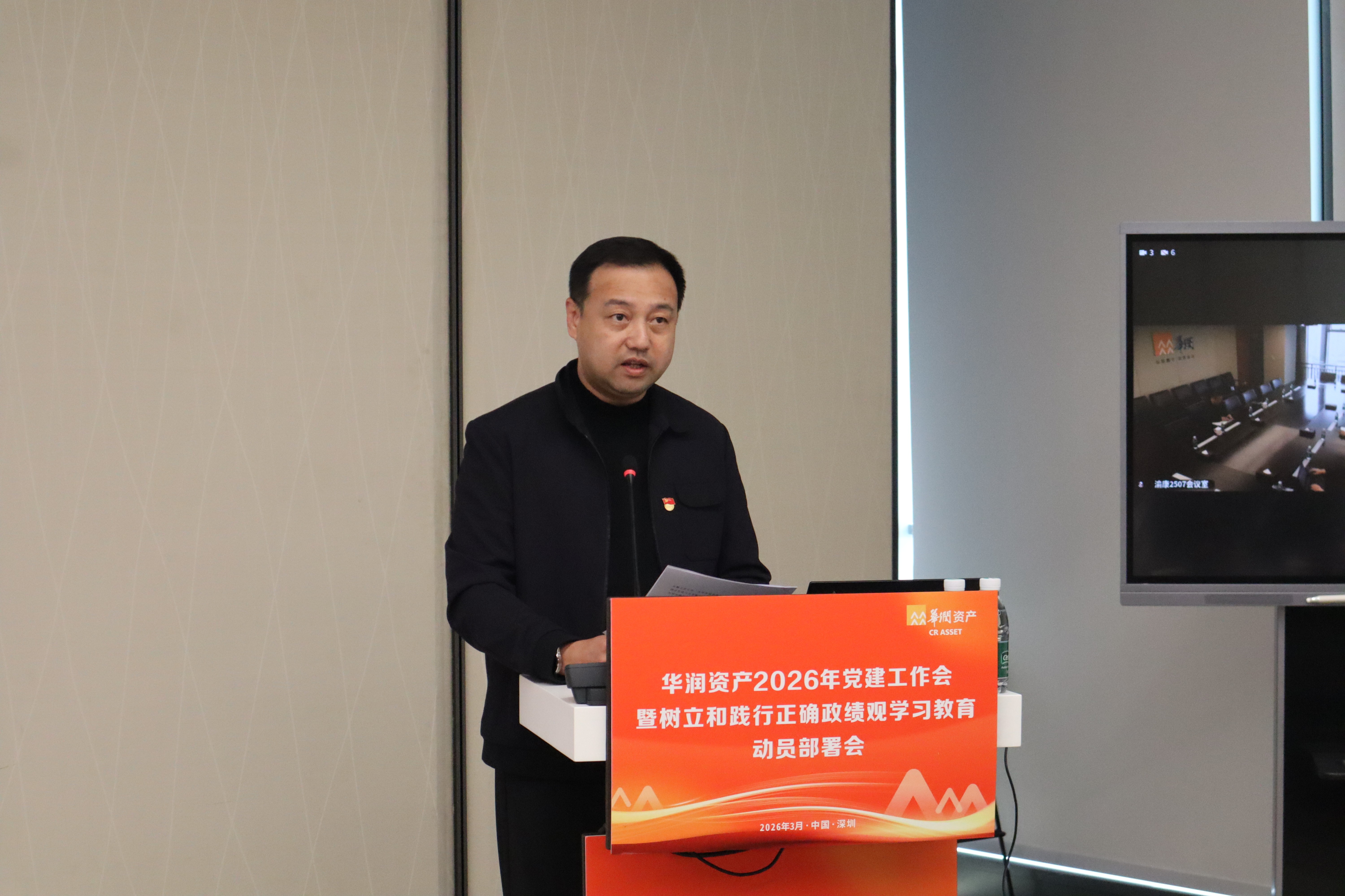 3月6日,华润资产在深圳召开2026年党建工作会暨树立和践行正确政绩观学习教育动员部署会。会议深入贯彻华润集团和华润金控2026年党建工作会议精神,总结回顾2025年党建工作成效,系统部署2026年重点任务,并对资产党委树立和践行正确政绩观学习教育进行动员部署。