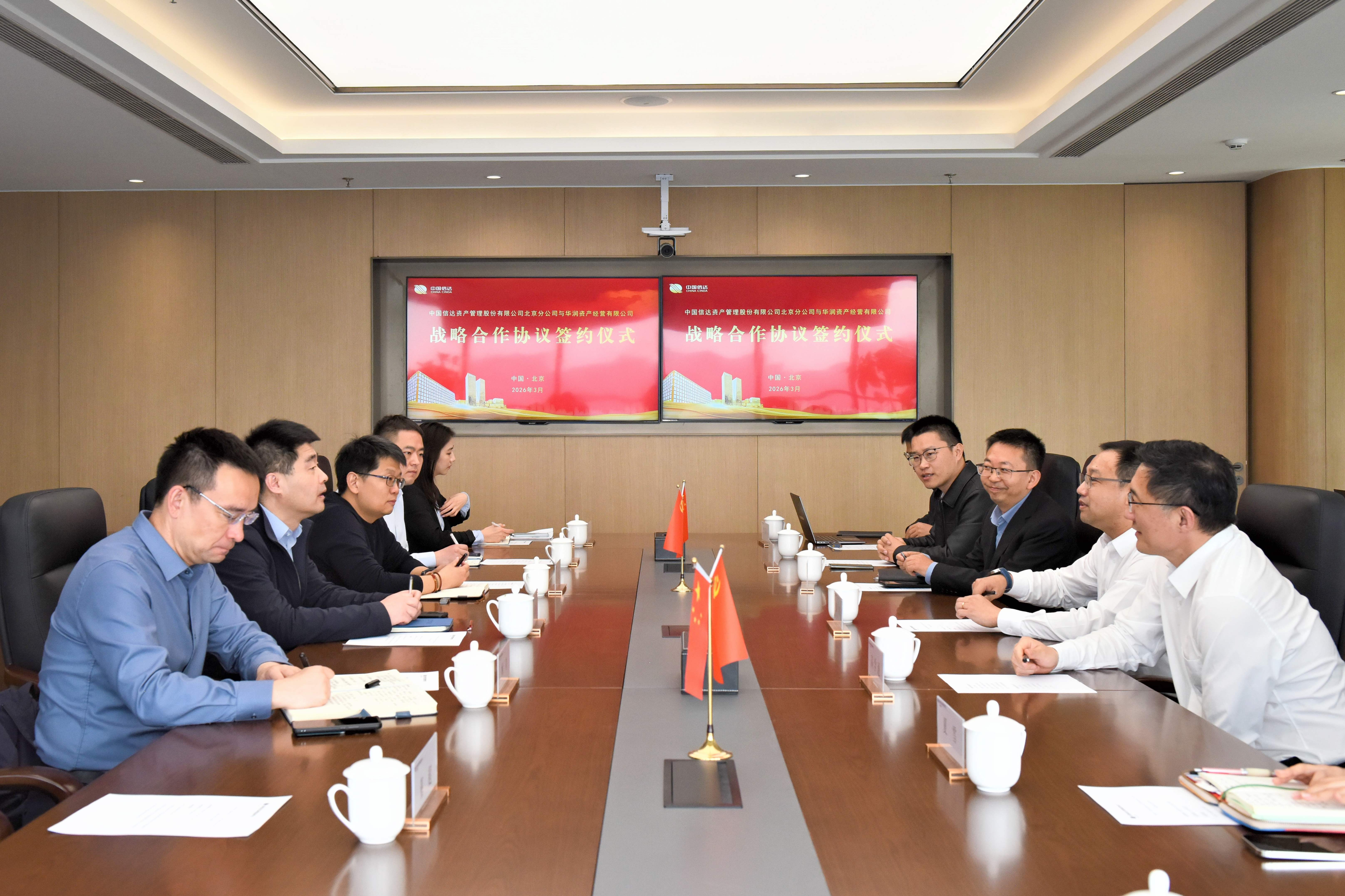 26日下午,华润资产与信达资产北京分公司在北京信达中心签订战略合作协议,随后开展座谈交流。信达资产北京分公司党委书记、总经理李清亮主持座谈会,重点介绍了公司在科技企业纾困、央国企“两非两资”盘活等领域的转型方向。双方围绕不动产盘活、新能源投资、大健康投行化业务等领域的合作进行深入探讨,并就建立常态化沟通机制、推动具体项目落地达成共识。信达资产北京分公司相关部门负责人参与了座谈。